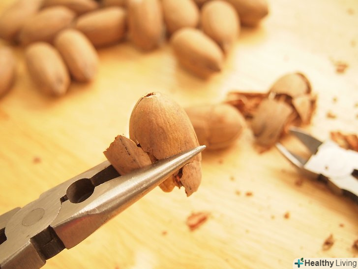 - Візьміть будь-які плоскогубці, покладіть горіх на робочу поверхню, акуратно розколіть шкаралупу пекана, повертаючи горіх до тих пір, поки вся шкаралупа не виявиться тріснутою.