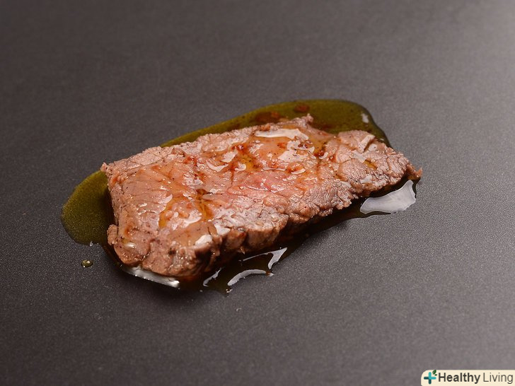 Приправте м'ясо оливковою олією.перед подачею свого улюбленого стейка, філе риби або іншого шматка м'яса, збризніть блюдо невеликою кількістю оливкової олії, щоб надати йому насиченості і соковитості. Приправте м'ясо сіллю і перцем за смаком і подайте до столу.