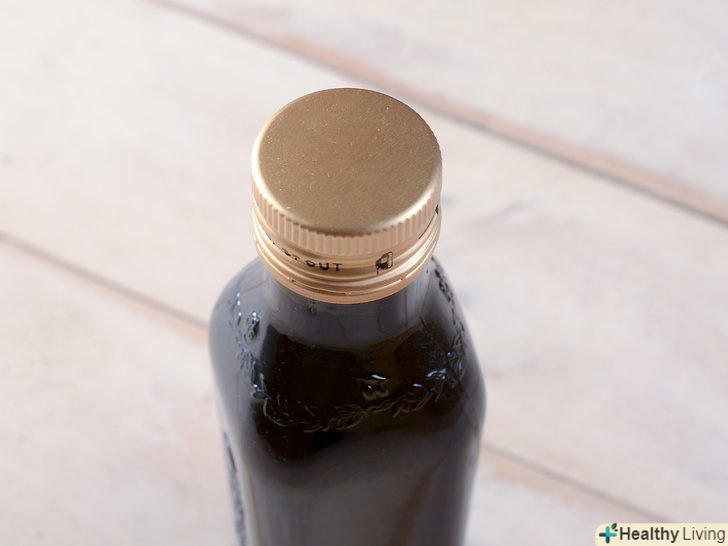 Закупорьте масло герметичною кришкою.кисень є ще одним елементом, який призводить до псування оливкової олії. В якому б контейнері ви не зберігали масло, воно повинно мати герметичну кришку, яка не пропускає кисень. Щільно закривайте кришку після кожного використання масла, щоб захистити його.[4]- Якщо ви стурбовані тим, що кришка не закривається належним чином, то перед тим, як закрити її, оберніть верх пляшки невеликим шматочком поліетиленової плівки.