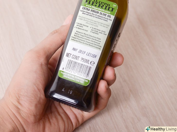 Перевірте дату збору.оливкова олія зберігає свою свіжість протягом року після збору врожаю оливок, але воно залишається придатним для використання ще рік.[8] щоб масло прослужило якомога довше, шукайте на пляшці інформацію про дату збору і купуйте те, що було отримано з свіжозібраних оливок.- Якщо дата збору не вказана, пошукайте дату розливу. При правильному зберіганні масло залишається придатним для використання від 18 місяців до двох років з дати розливу.[9]