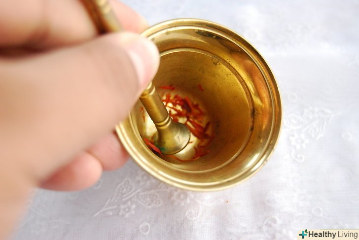Покладіть волокна шафрану в ступку.перетріть сильно натискаючи.
