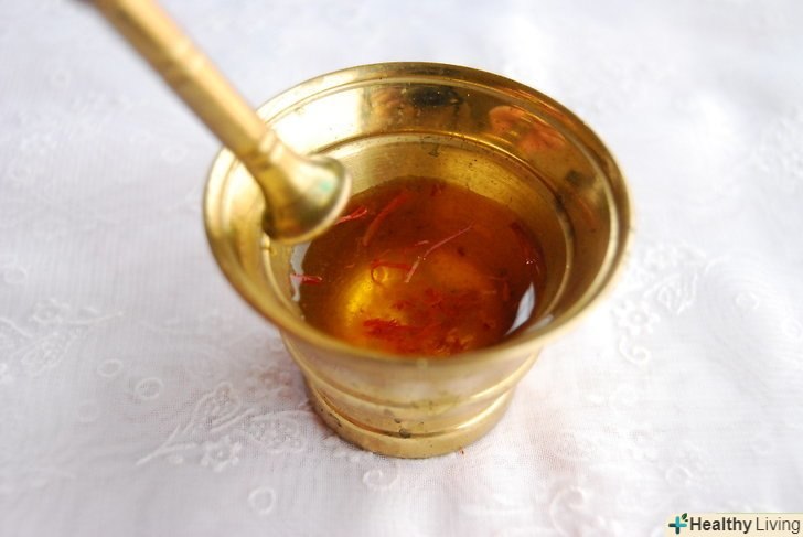 - Рідку шафранову суміш можна приготувати наступним чином: насипте щіпку шафрану в маленьку миску. Влийте 4 - 6 столових ложок гарячої води. Дайте суміші настоятися протягом 2 годин і потім можете її використовувати.