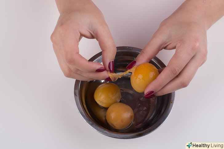 Зніміть шкірку.швидко усуньте шкірку, пробланшировав фрукти в киплячій воді.- Доведіть воду до кипіння в середній каструлі.