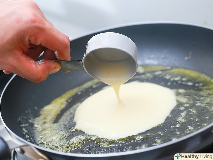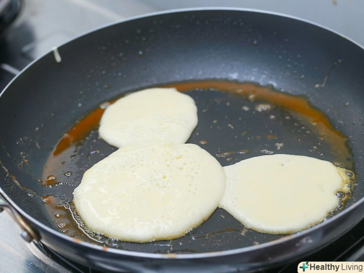 Для приготування кожної наступної оладки додавайте в міру необхідності більше жиру.кожна покладена на сковорідку оладки вбирає в себе частину вершкового (або рослинного) масла, використовуваного вами для змазування поверхні сотейника. Якщо сковорода виглядає занадто сухою, в такому випадку швидко протріть її паперовим рушником, а потім додайте ще трохи жиру.- Не здумайте знехтувати цим кроком, інакше без належної мастила оладки пристануть до її поверхні. Це призведе до труднощів з перевертанням оладок (які, до того ж, можуть підгоріти).