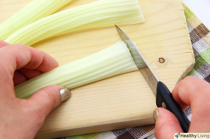 Відріжте листову частину разом зі стеблами.на п'ять хвилин поставте зелень в теплу воду, ще п'ять хвилин потримайте селера в крижаній воді.
