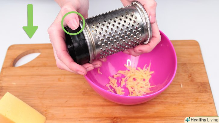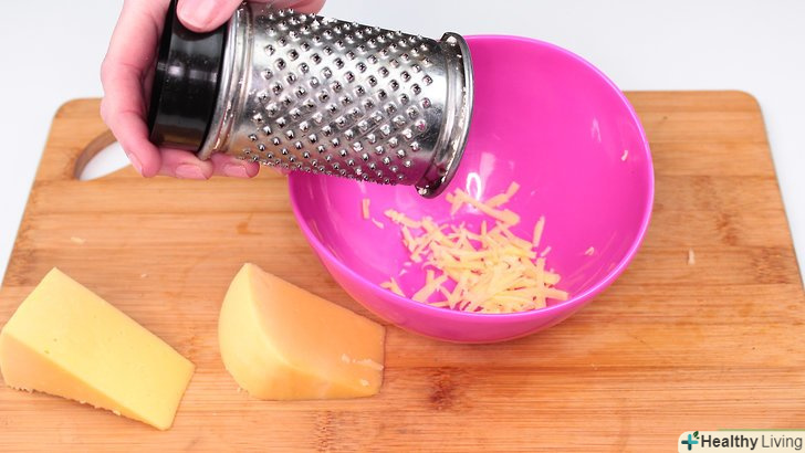 Нарубати сир в кухонному комбайні.для швидкого і легкого натирання сиру комбайн, це оптимальний варіант.- Охолодіть сир, поки він не затвердіє, але не перестарайтеся. Наріжте його на маленькі шматочки і покладіть в кухонний комбайн.[9] постарайтеся не перевантажувати його. Іноді ножі застряють і починають вібрувати при натиранні сиру.[10]