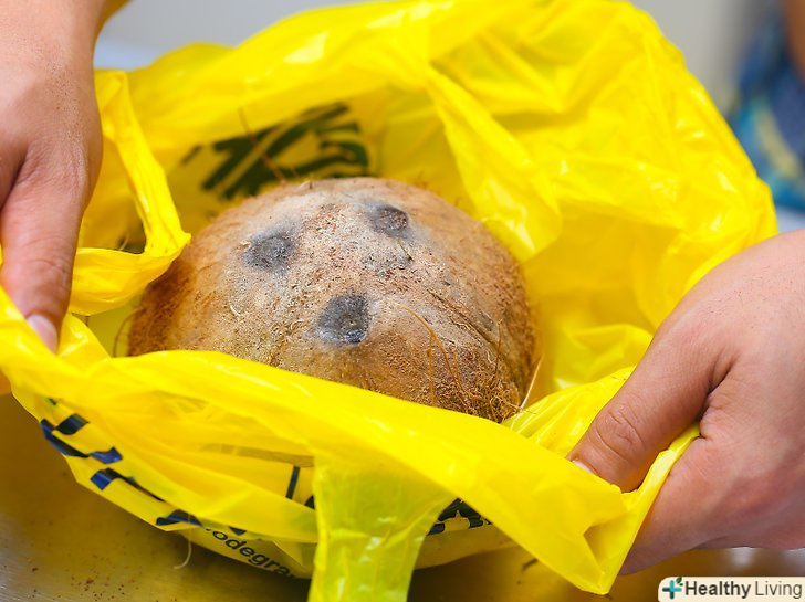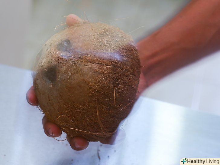 Переконайтеся, що кокос, який ви вибрали цілий.огляньте плід на наявність видимих пошкоджень. Якщо ви помітите тріщини, відколи або вм'ятини – краще виберіть інший кокос. Особливу увагу приділіть місцю з трьома дірочками. З них не повинна просочуватися рідина.