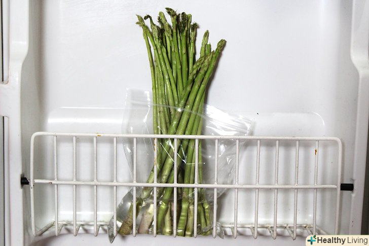 В якості альтернативи, помістіть спаржу в пластиковий пакет з невеликою кількістю води і поставте його вертикально на полицю в дверцятах холодильника.