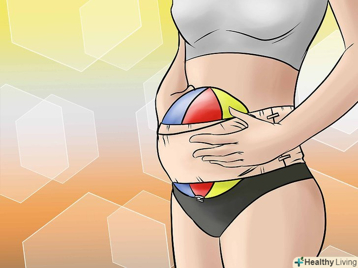 Прикріпіть м'яч до тіла.можна використовувати еластичний бинт, бандо або майку з бретельками. Оскільки м'яч буде важити набагато менше, ніж шолом або ковдри, вам буде простіше закріпити його. Буде достатоно одного щільного бюстгальтера-бандо або щільної майки.- Направте ніпель м'яча вниз. Якщо він буде виступати назовні, він буде помітний з-під одягу, а якщо ви повернете його до тіла, він натре шкіру і викличе роздратування.