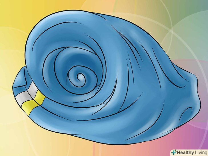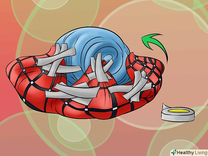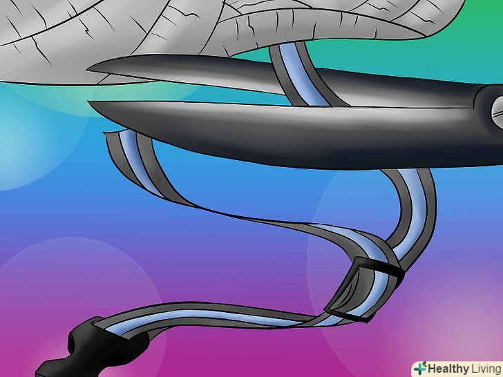 Закріпіть шолом на животі.є кілька способів, і ви можете навіть використовувати різні прийоми одночасно. Шолом повинен триматися надійно і не з'їжджати.- Щільно оберніть себе і шолом еластичним бинтом кілька разів. Обмотуйте стільки разів, скільки буде потрібно для того, щоб шолом тримався надійно, але щоб на ньому при цьому не було складок.