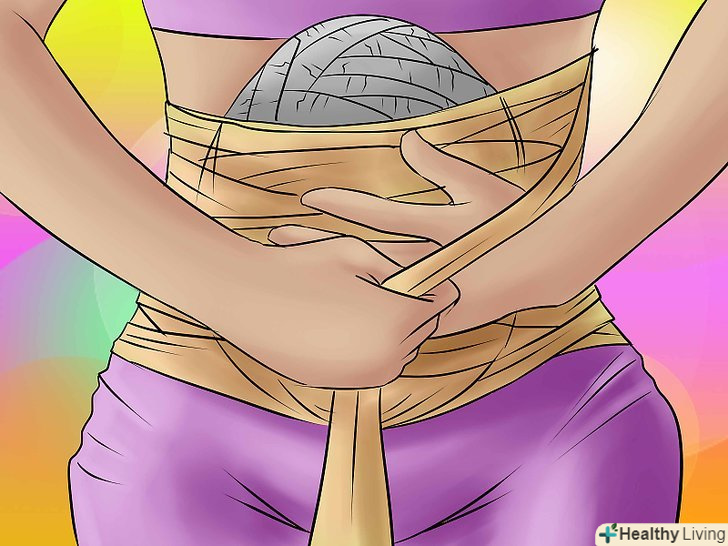 Прикріпіть ковдри до тіла.можна робити все точно так же, як з шоломом в попередньому розділі статті.- Щільно оберніть себе і ковдри еластичним бинтом кілька разів. Обмотуйте стільки разів, скільки буде потрібно для того, щоб живіт тримався надійно, але щоб на ньому при цьому не було складок.