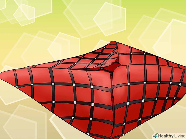 Складіть перше ковдру так, щоб вийшов ромб.це буде зовнішньою частиною живота, і ви будете використовувати його для створення обсягу і форми.- Розкладіть ковдру на підлозі або на широкій поверхні на зразок ліжка або столу.