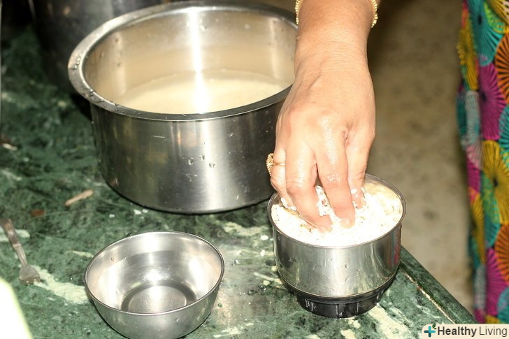 Замочіть варений рис і в окремих ємностях і залиште так на 4 години.пізніше їх потрібно буде змішати, щоб вийшла густа маса, яку потрібно буде залишити на 6 годин для бродіння.