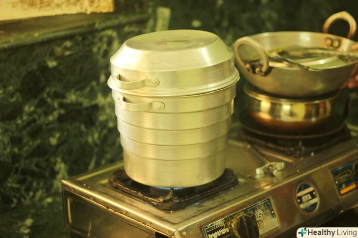 Помістіть форму у велику, розігріту каструлю з водою для приготування на пару.