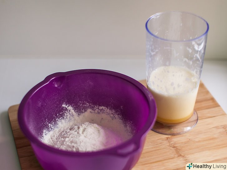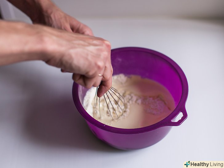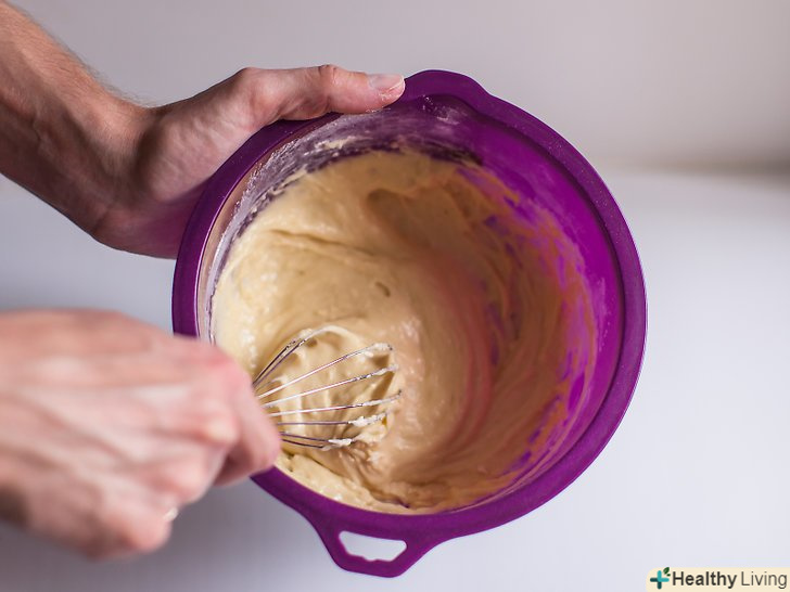 - Залийте замість води трохи молока і знову збийте суміш.подивіться, яка кількість води вказано в рецепті, відміряйте замість неї молоко і повільно залийте його в миску, безперервно помішуючи її вміст. Ця кількість може варіюватися, хоча для більшості сумішей становить близько 1⅓ склянки (320 мілілітрів). Молоко додасть кексу більш багатий і насичений смак.[31]