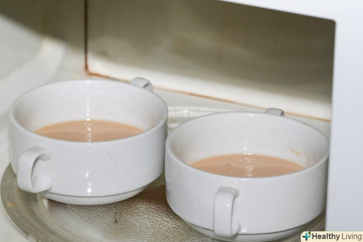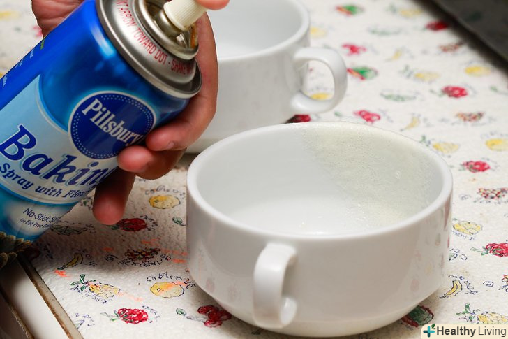 Змастіть маслом або кулінарним жиром блюдо, яке можна використовувати в мікрохвильовій печі, і вилийте в нього суміш.