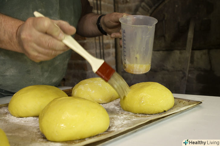 - Глазуруйте яйцями.просто злегка помажте верхню частину булки сумішшю, поки не покриєте тонким шаром рідини. Це зробить вигляд булочки гідною ресторанного тарифу-золотий і красивою, коли вона буде готова.