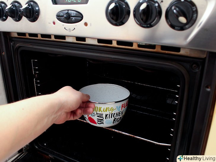 Розігрівайте духовку 2 хвилини на найнижчій температурі.поставте таймер, щоб не забути. Поки духовка розігрівається, поставте на плиту каструлю з водою і доведіть її до кипіння. Вимкніть духовку, коли 2 хвилини закінчуються.[9]