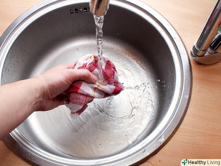 Змочіть кухонний рушник під теплою водою.рушник повинен бути мокрим, але при цьому з нього не повинна стікати вода. Якщо з рушника стікає багато води, вичавіть його над раковиною.[1]