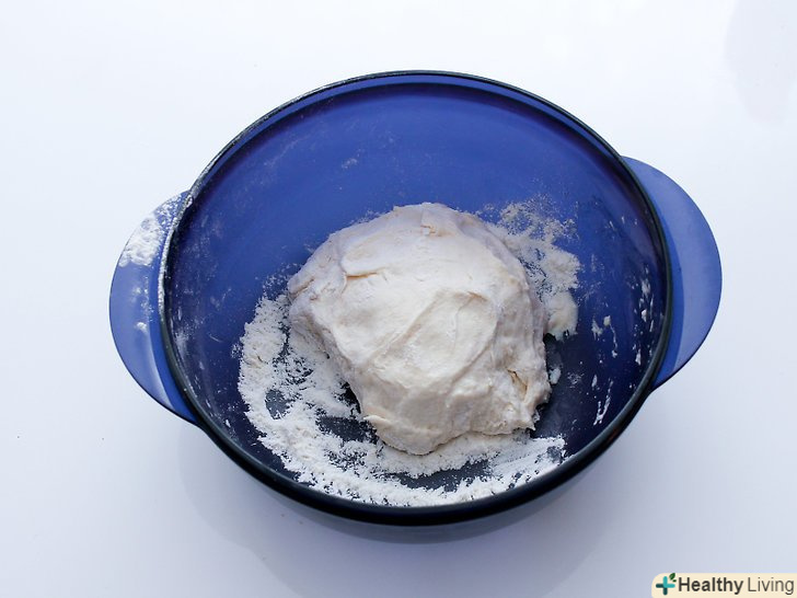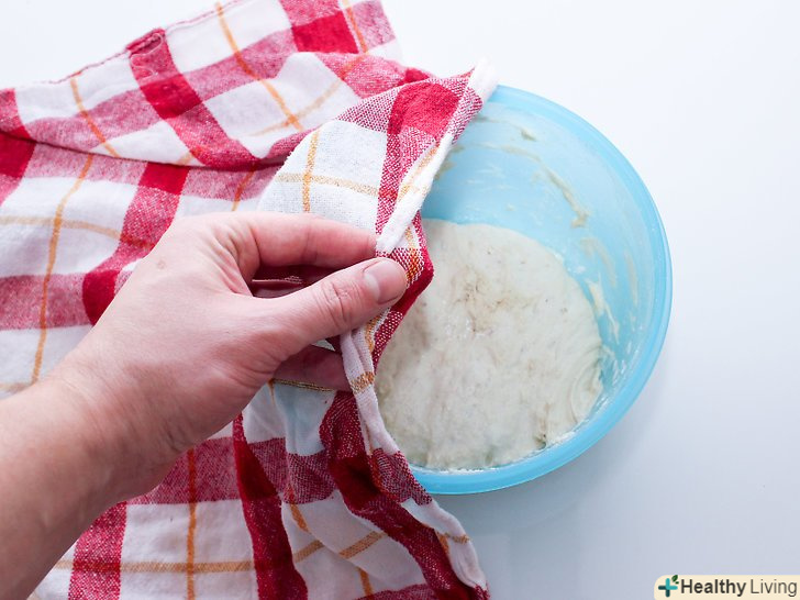 Накрийте тісто вологим рушником. Тісто має бути повністю накрите рушником. Розтягніть рушник так, щоб його краї звисали з миски або лотка, в якому знаходиться тісто. Завдяки волозі з рушника підйом тесту прискориться.[2]- Візьміть два вологих рушники і покладіть їх один на одного, якщо поверхня тесту занадто велика.