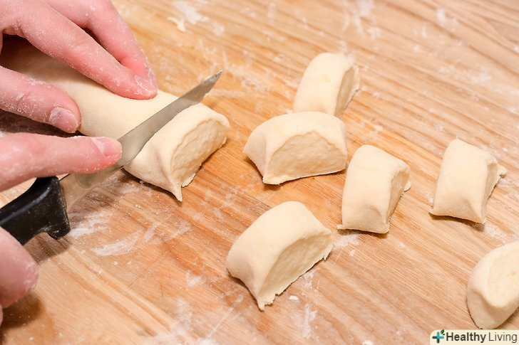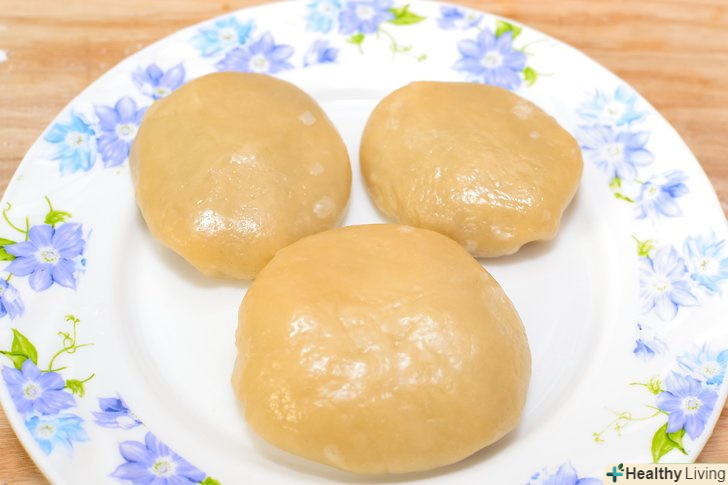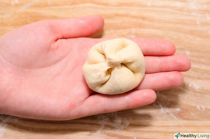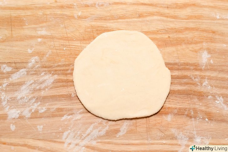 Посипте залишками борошна стіл і розкачайте всі кульки тіста в корж товщиною 6 міліметрів.перевірте, щоб їхні краї були набагато тоншими, ніж середина. Це дозволить легко загорнути булочки і отримати готовий продукт відповідного обсягу.- Найкраще підійде качалка маленького розміру, а не та велика, з якою мама ганялася за вами по дому в дитинстві. Якщо під рукою немає качалки відповідного розміру, просто розкачайте кожен кульку склянкою з широким дном, з силою натискаючи і потім надаючи тесту форму руками.