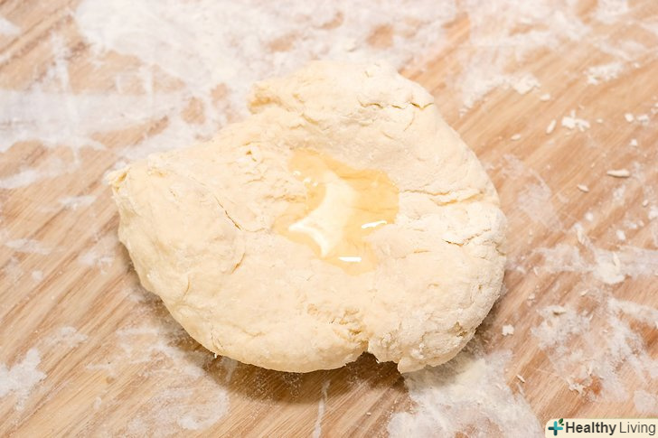 Додайте одну столову ложку рослинної олії в тісто, а потім вимішуйте його ще 10 хвилин.тепер залиште в мисці на 30 хвилин. Тісто трохи підніметься, так як в борошні для булочок міститься розпушувач.