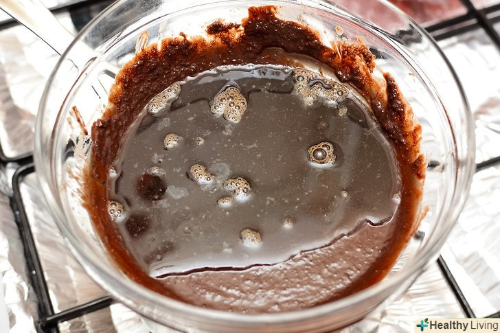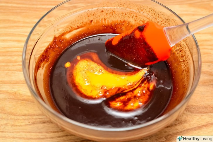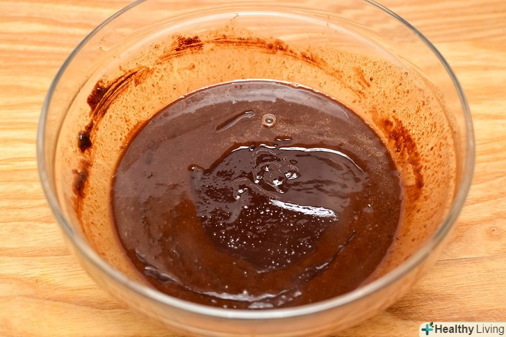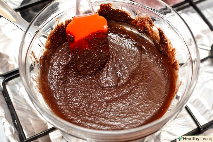 Закип'ятіть каструлю з водою.поставте миску на каструлю (або використовуйте водяну баню).- Додайте ½ склянки вершкового масла, звичайний цукор і шоколад в металеву миску. Постійно помішуйте, до повного розчинення вершкового масла і шоколаду.