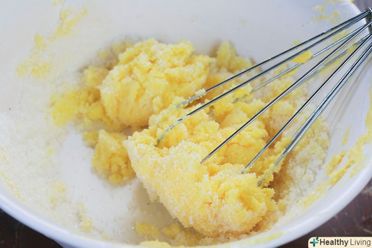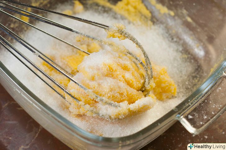 Збийте вершкове масло і цукор.за допомогою електричного або ручного блендера перемішайте масло і цукор протягом приблизно 2 хвилин до однорідної маси. В результаті у вас вийде світло-жовта пухнаста суміш.