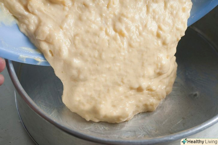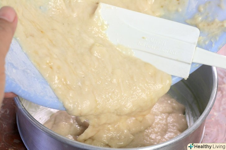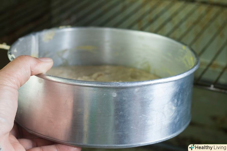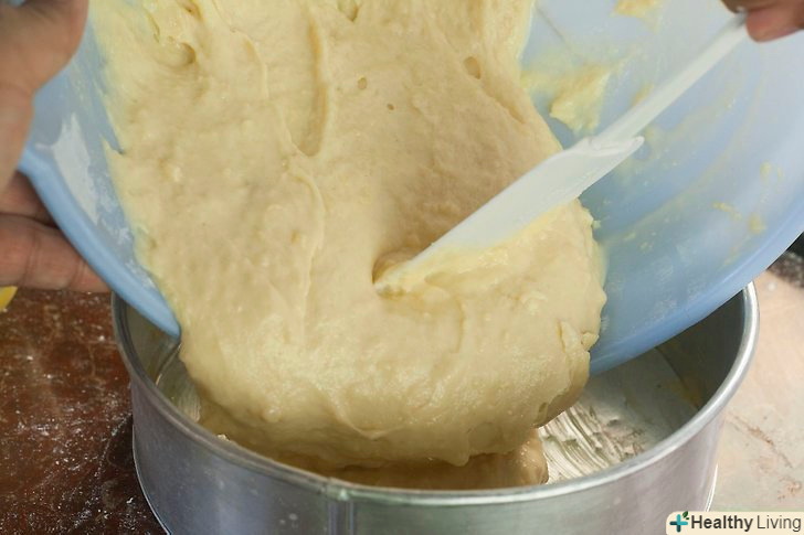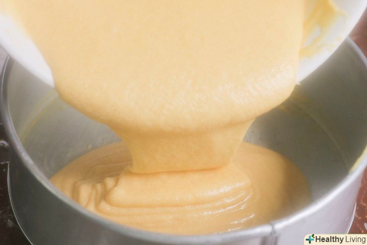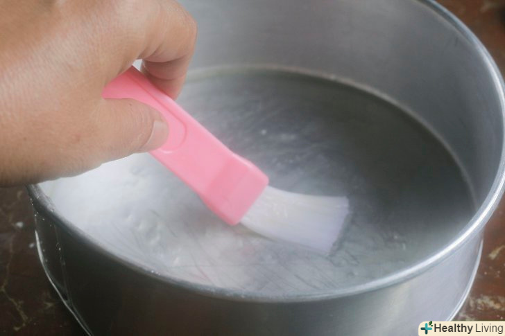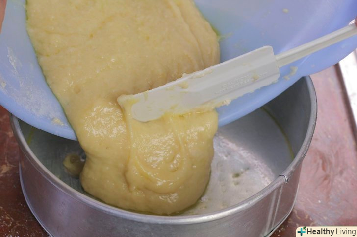 Підготуйтеся до випічки торта.Розігрійте духовку до 180 градусів Цельсія. Візьміть форму для випічки діаметром від 22 до 33 сантиметрів і присипте її борошном і змастіть топленим вершковим або рослинним маслом (використовуйте для цього пензлик для випічки). Додавайте безглютенову борошно.