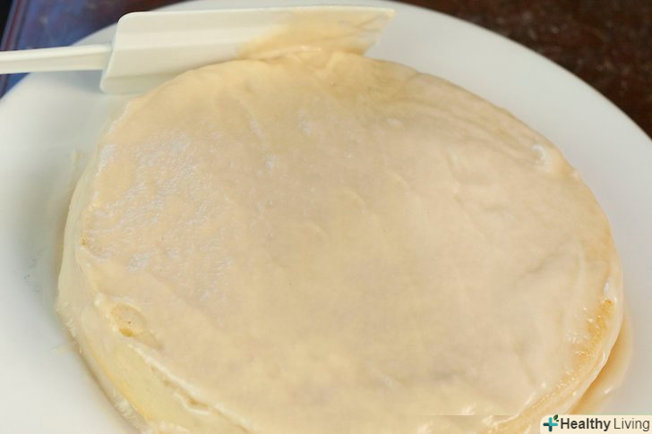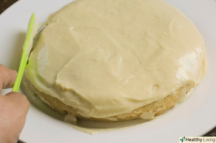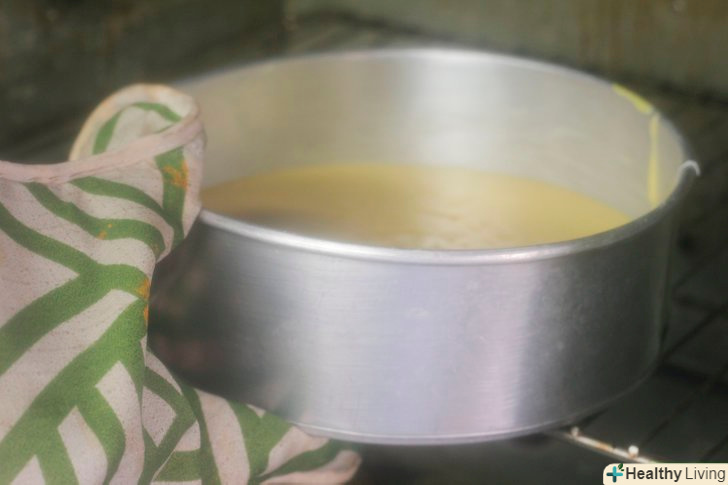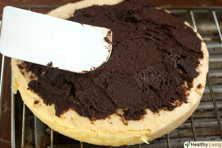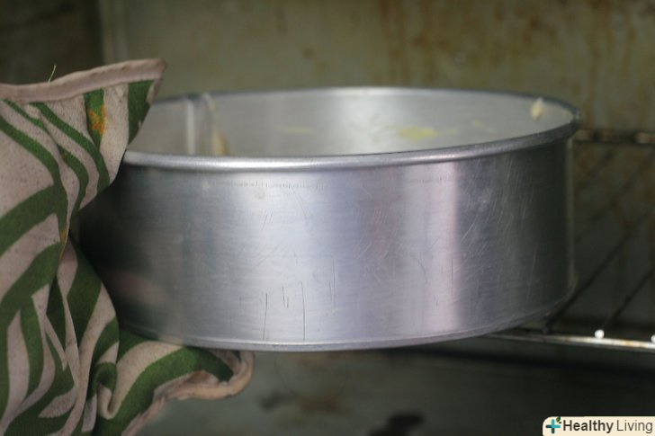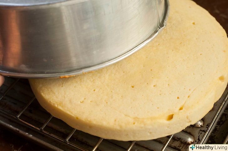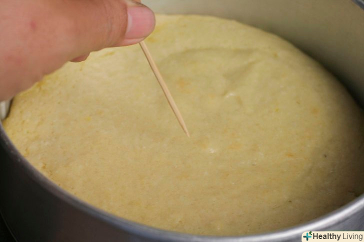 Выпеките торт.поставте тісто в духовку приблизно на 35 хвилин. Готовий бісквіт відновлює свою форму, якщо на нього натиснути пальцем. Також можна перевірити готовність за допомогою зубочистки – якщо ви проткнете торт зубочисткою, вона залишиться сухою.