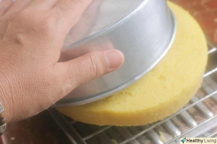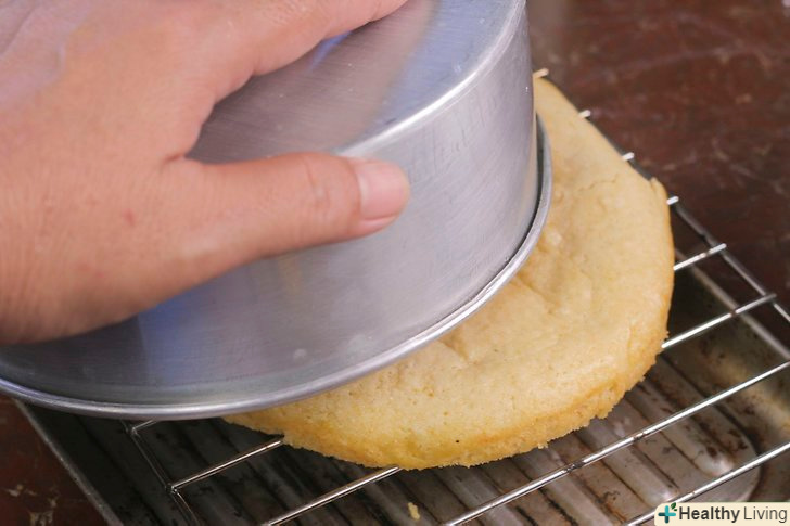 Зачекайте, поки торт охолоне.переверніть торт і покладіть його на решітку. Щоб витягти торт з форми, пройдіться уздовж його краю ножем. Після цього торт повинен випасти з форми. Зачекайте близько 5 хвилин, поки він охолоне.