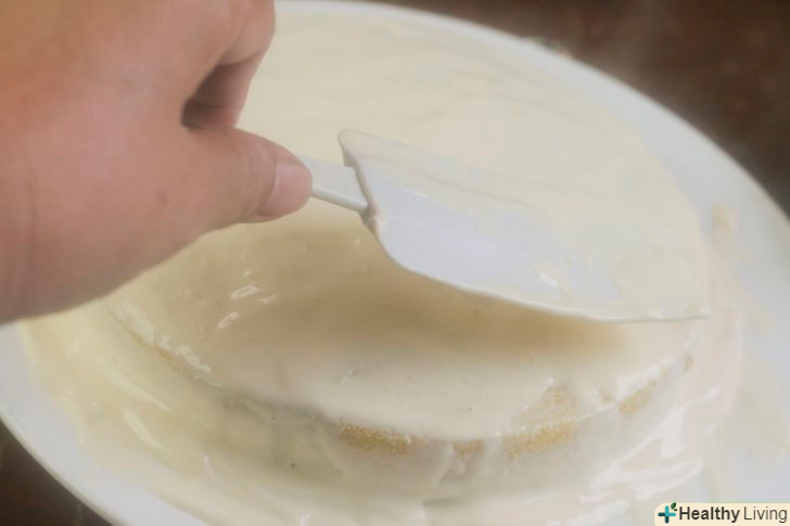 Выпеките торт.поставте тісто в духовку на 25-30 хвилин. Готовий бісквіт відновлює свою форму, якщо на нього натиснути пальцем. Також можна перевірити готовність за допомогою зубочистки – якщо ви проткнете торт зубочисткою, вона залишиться сухою.