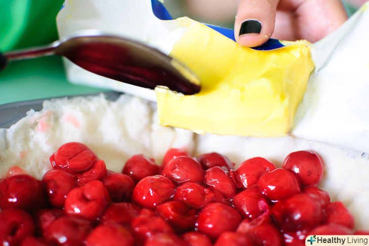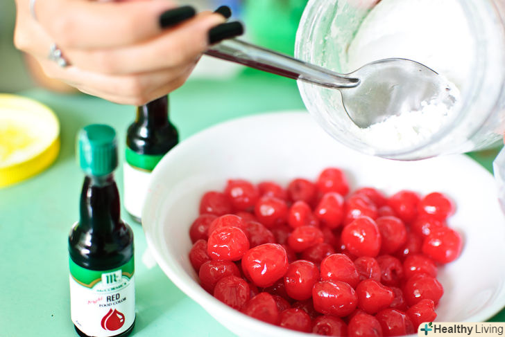 Змішайте вишні, цукор, кукурудзяний крохмаль, екстракт мигдалю і червоний харчовий барвник.