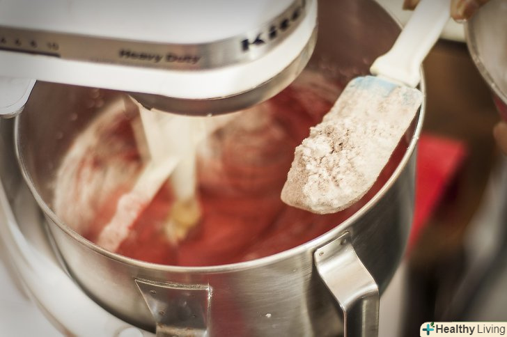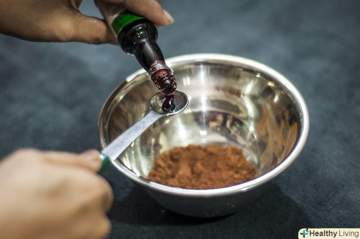 У невеликій мисці змішайте какао з харчовим барвником.не хвилюйтеся, якщо барвник не перемішається з усім порошком какао. Додайте суміш какао і барвника в тісто.
