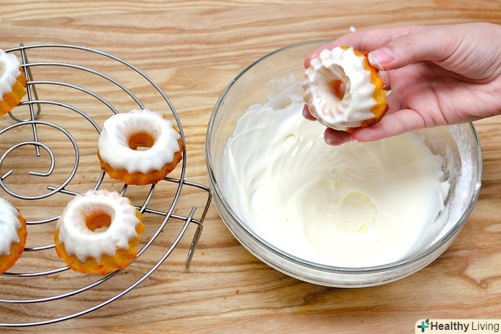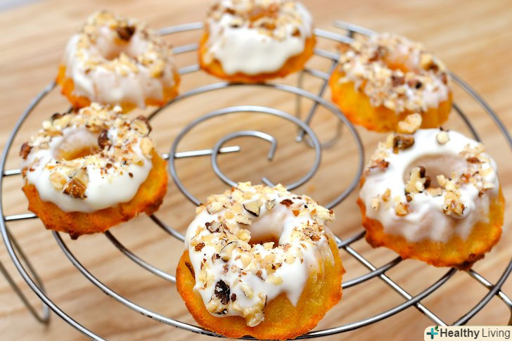 Прикрасьте пончики.перш ніж глазур застигне, обов'язково прикрасьте пончики шматочками волоських горіхів. Просто дрібно наріжте горіхи і посипте ними пончики.