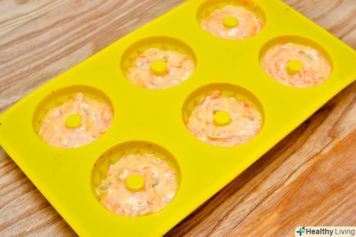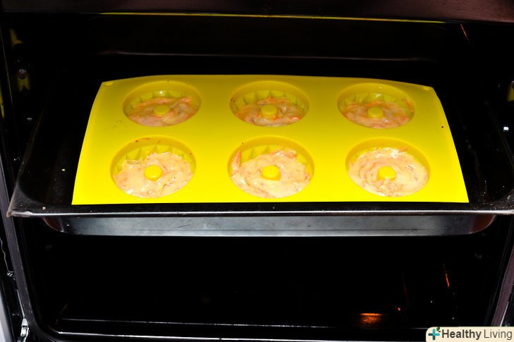 Заповніть спеціальну сковороду для пончиків.додайте тісто у відповідні форми в сковороді. Заповнюйте порожнини приблизно наполовину.