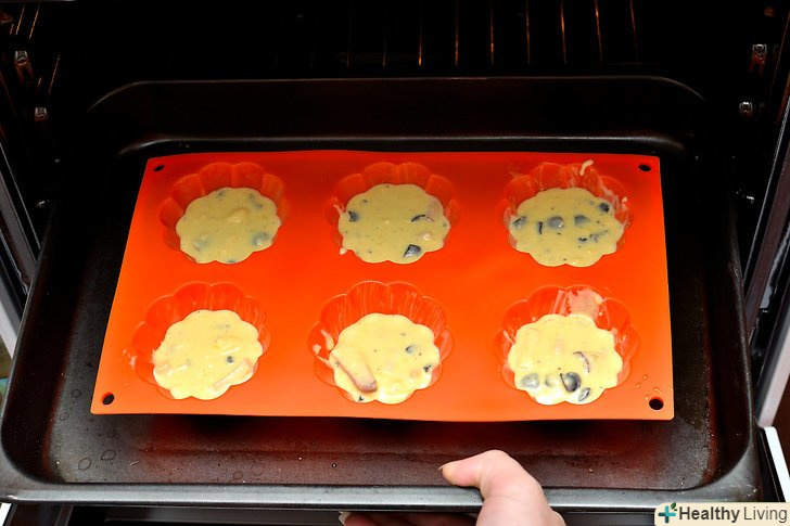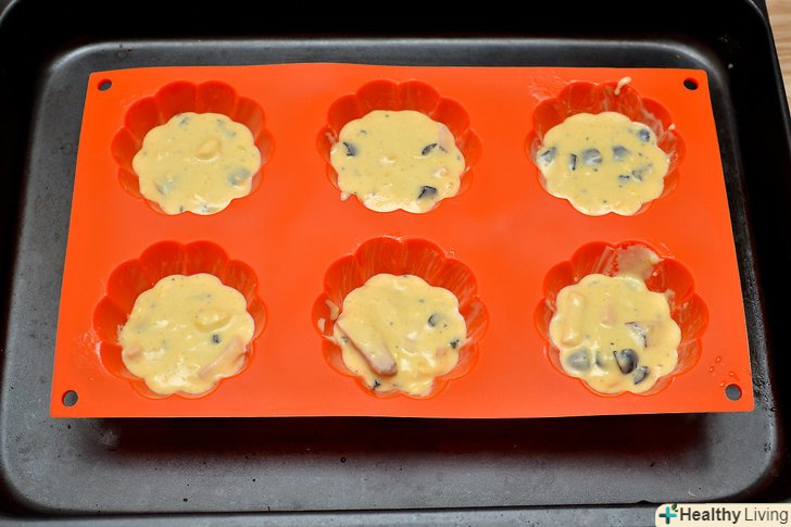 Розподіліть суміш по формах для випічки, кожна форма повинна бути заповнена приблизно на 2/3.
