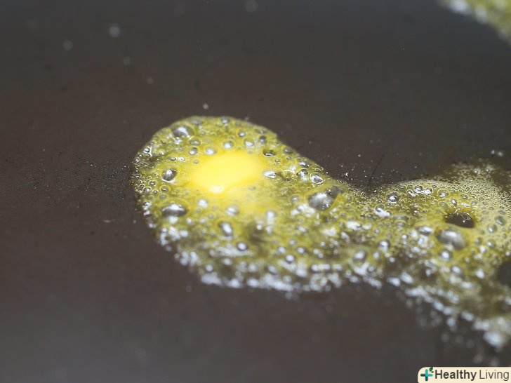 Підготуйте сковороду.поставте сковороду на середній вогонь і додайте шматочок масла. Зачекайте, поки воно розтане.[13]