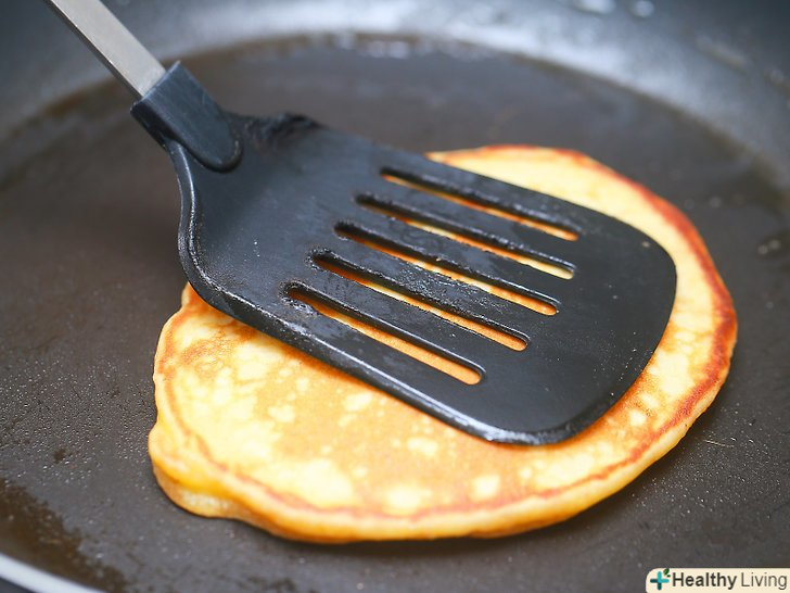 Готуйте тісто.кожен млинець необхідно обсмажити з двох сторін протягом пари хвилин. На поверхні тесту з'являться маленькі бульбашки, після чого млинець необхідно перевернути.[15]