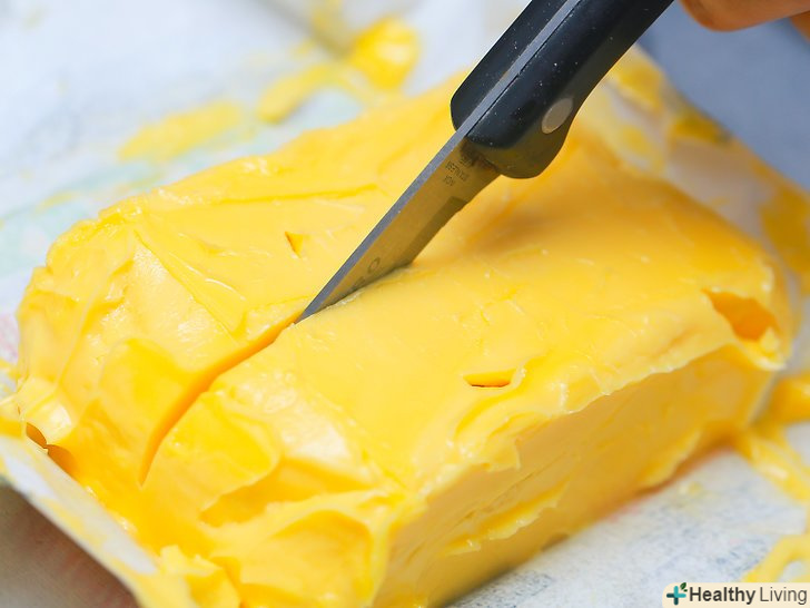Відріжте необхідну кількість вершкового масла.гострим ножем наріжте його на дрібні шматочки.[18]