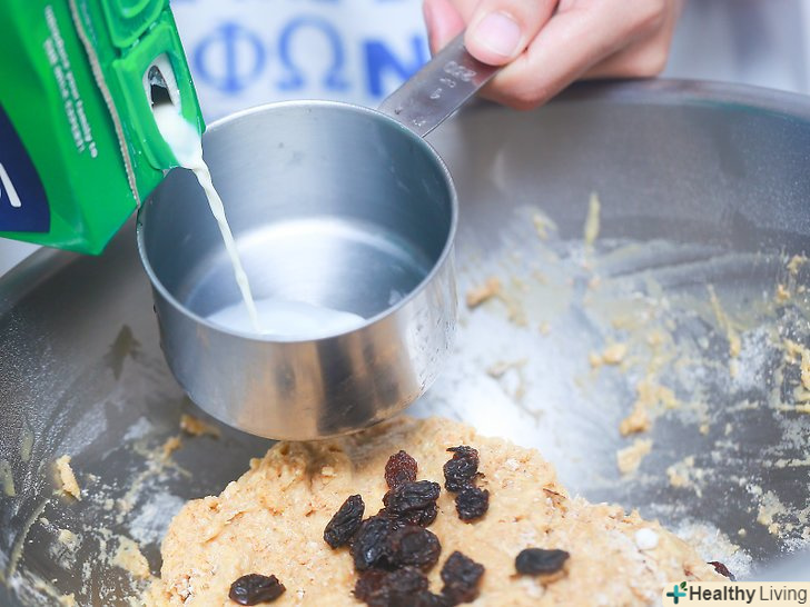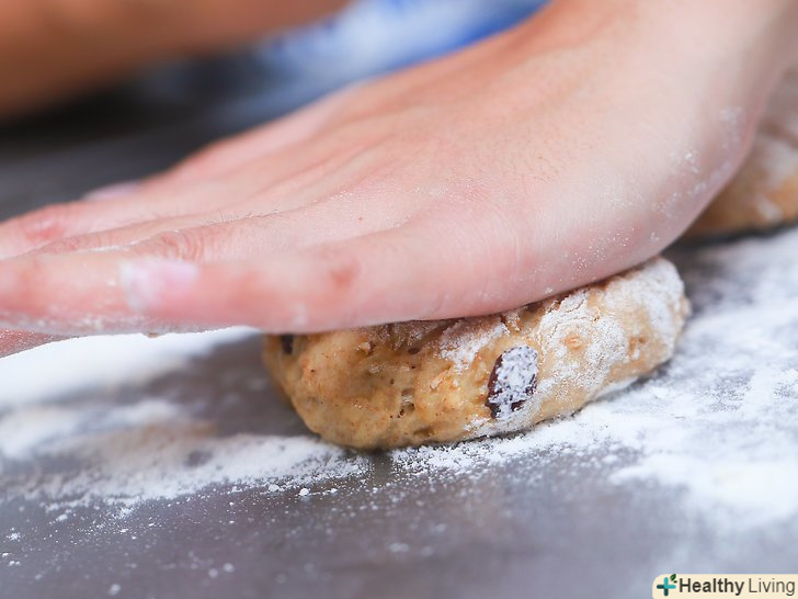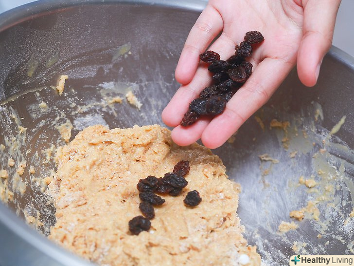Додайте будь-які начинки.можна додавати приправи і начинки, наприклад сушену журавлину, кмин, родзинки, кріп, розмарин і сир чеддер.[21]- Додайте 1-2 столові ложки приправ. Використовуйте не більше 1 склянки начинки, якщо вирішили додати журавлину, родзинки або сир чеддер. Сиром можна присипати зверху, після того як буханець буде вже сформована, але перед тим, як ви поставите її в духовку.[22]
