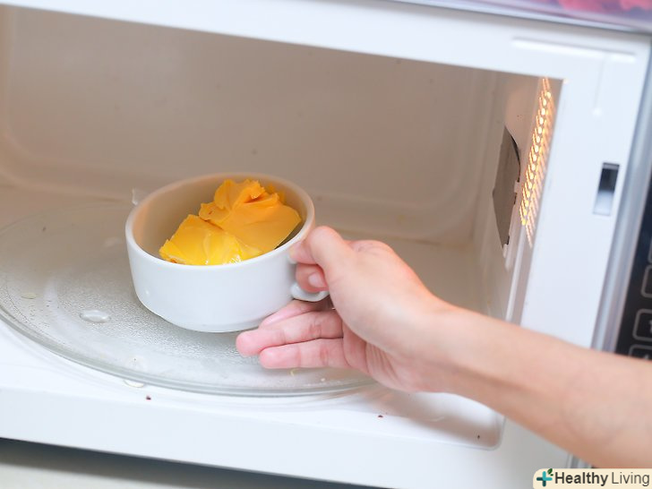 Розтопіть масло.додайте 60 грам вершкового масла в жароміцний посуд. Нагрівайте її в мікрохвильовій печі, поки масло не розтане.