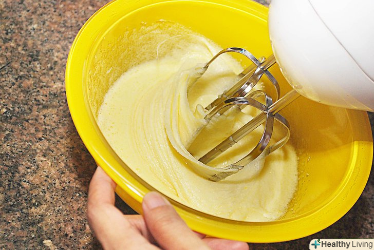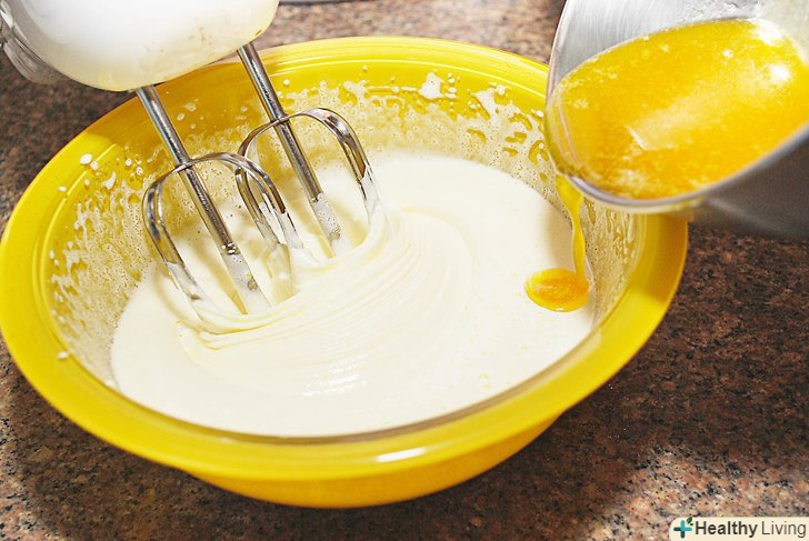 Налийте масло в миску з яйцями і цукром, заважайте до утворення однорідної маси.