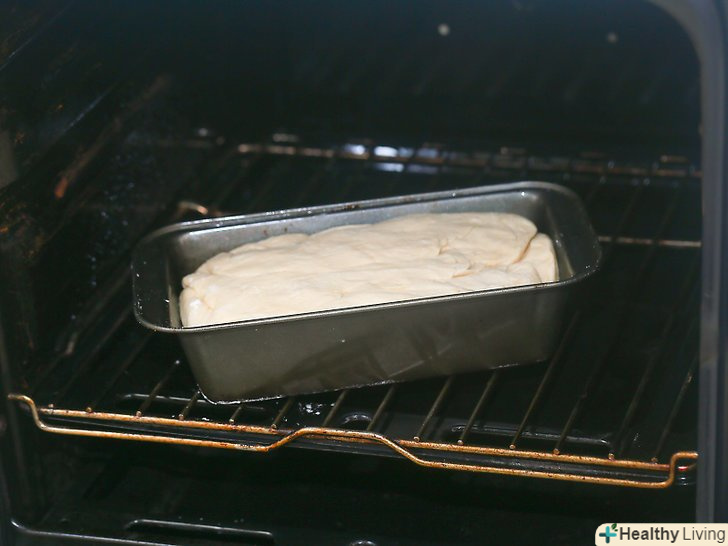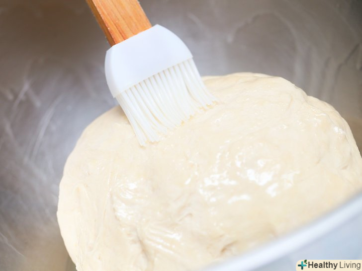 Покрийте кулю з тіста рослинним маслом або покладіть його в змащену маслом чашку.це запобігти поверхню тесту від висихання і розтріскування під час того, як воно буде підніматися. Підсохла поверхня тесту в результаті виявиться неприємними грудочками в готовому хлібі. Накрийте чашку чистим кухонним рушником або плівкою для упаковки продуктів і поставте в тепле, але не спекотне місце.- Залиште тісто на 90 хвилин, щоб воно піднялося. Обсяг тесту повинен збільшитися вдвічі, або, по крайней мере, воно повинно досить піднятися, якщо ви використовували багато пшеничного борошна.