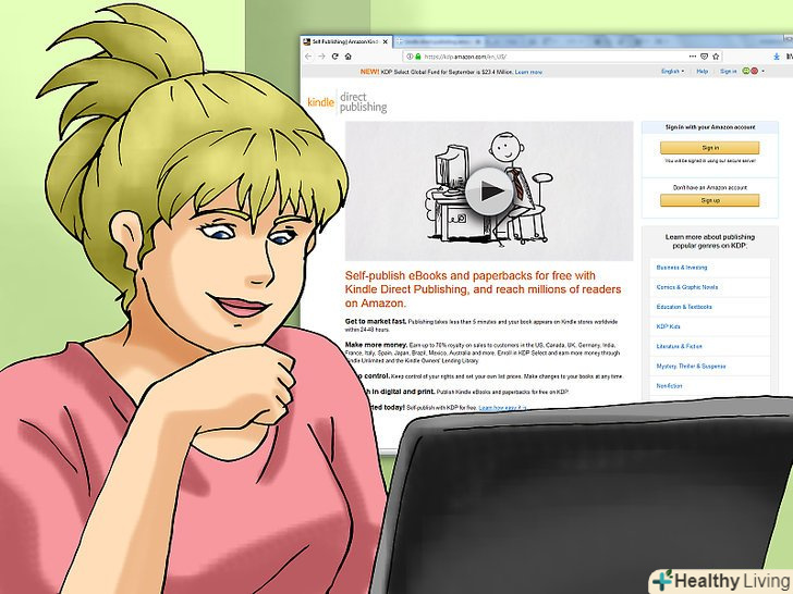 Публікація книги онлайн.Публікація електронної книги своїми силами-це життєздатний і поширений варіант. В даному випадку кращі можливості забезпечує сервіс Kindle Direct Publishing компанії Amazon. Просто завантажте свій рукопис в програму і почніть продавати копії.- Сервіс KDP є безкоштовним, але компанія Amazon залишає собі до 70% доходу.