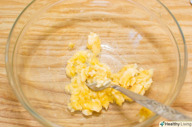 Розімніть банани в маленькій мисці.для цього можна скористатися виделкою, картоплем'ялкою або блендером. Вийшло бананове пюре повинно мати однорідну кремову текстуру.- Під час пюрирования бананів додайте сік лимона, щоб банани не стали коричневими.[5]