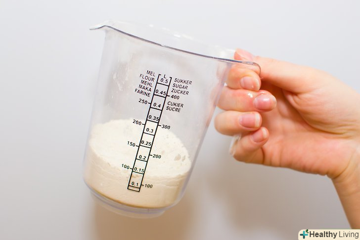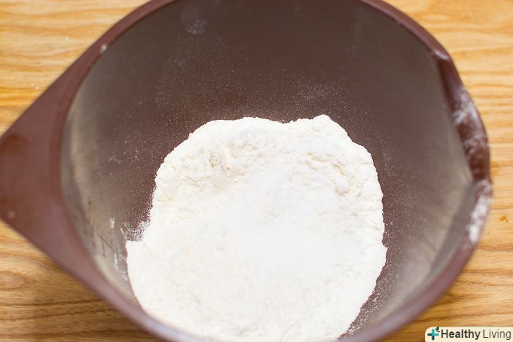 Змішайте сухі інгредієнти.покладіть борошно і харчову соду в миску. Додайте сіль. Добре перемішайте, а потім приберіть миску в сторону.