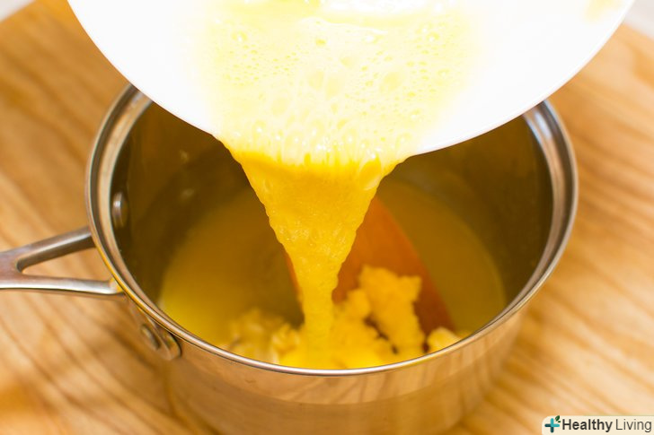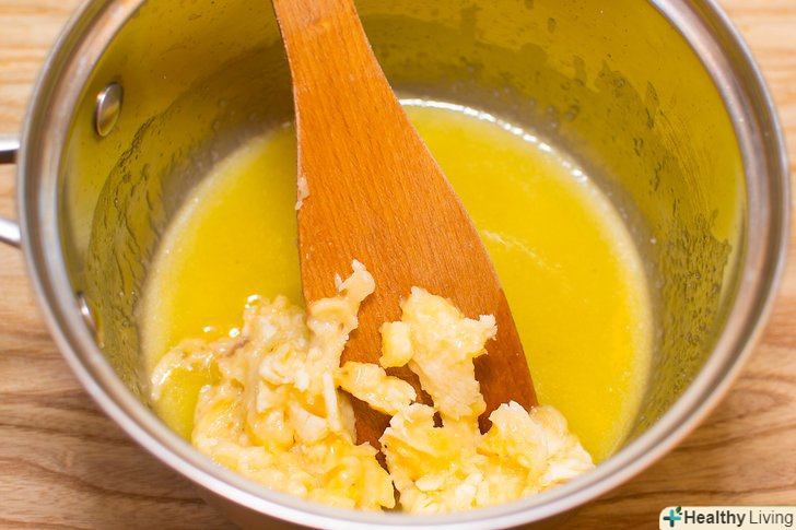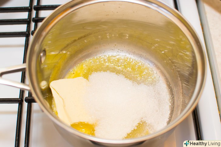 Розігрійте каструлю.розтопіть в ній цукор і масло, підтримуючи середній або низький вогонь. Чи не перегрівайте каструлю, щоб масло і цукор не підгоріли.- Вимкніть вогонь і приберіть каструлю в сторону.