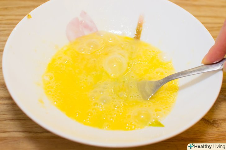 Підготуйте яйця.Розбийте два яйця в окремій мисці і злегка збийте їх за допомогою вилки або віночка так, щоб вся суміш стала білою і однорідною.[1]- Для отримання найкращого результату використовуйте яйця кімнатної температури.[2] щоб яйця зігрілися до кімнатної температури, дістаньте їх з холодильника за 10-15 хвилин до початку готування.