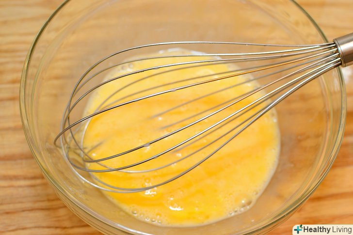 Змішайте яйця, молоко і ваніль.в окремій мисці, збийте разом яйця і молоко, поки добре не змішаються. Додайте ваніль і збивайте, поки вона, також, рівномірно не змішається з іншими інгредієнтами.- Для дещо іншого повороту на традиційний смак, розгляньте можливість використання кокосового екстракту замість ванілі.